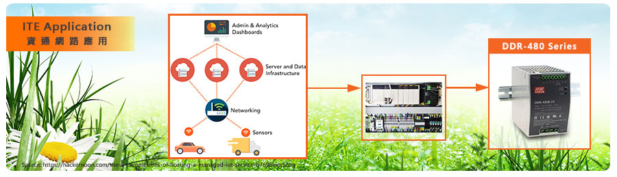 DDR-480系列采薄型化導軌型機殼設計,主要特點(diǎn)包含掛軌安裝便捷、面寬僅85.5mm可大幅降低系統端導軌(TS-35/7.5或15)空間不足困擾、2:1寬壓輸入、4000Vdc輸入/輸出隔離(具加強絕緣)、-40~+80℃操作溫度、具150%峰值負載能力、可并聯(lián)至1920W(3+1臺)、5G耐震…等專(zhuān)業(yè)性能。此外,通過(guò)了信息類(lèi)IEC62368-1/UL62638-1、EN55032、EAC TP TC004及鐵道EN50155法規認證,非常合適使用于鐵道、電車(chē)、捷運、巴士及資通網(wǎng)絡(luò )、工控自動(dòng)化、通信設備等產(chǎn)業(yè)或搭配AC/DC導軌式電源供應器一體化安裝美觀(guān)要求的系統,一般常見(jiàn)應用如:需求二極式隔離、DC UPS系統、電池轉壓或穩壓……等。