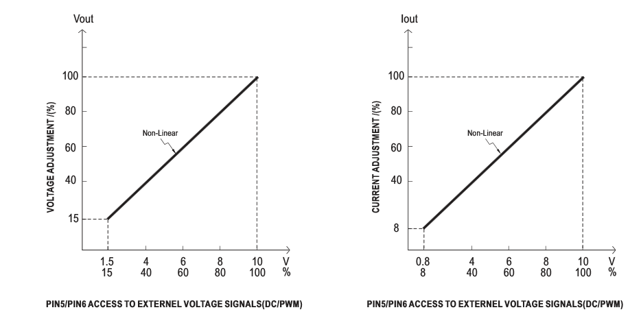原PV/PC使用外接電壓訊號調控范圍20%~100%,PWM調控范圍8%~100%,優(yōu)化后外部電壓和PWM訊號可調控范圍統一定義(圖一),PV范圍15%~100%,PC范圍8%~100%。