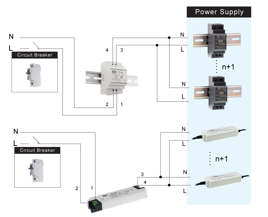現在明緯提供了一個(gè)解決方案,在A(yíng)C斷路器后端加裝ICL不僅可替終端系統解決AC斷路器跳電,更可替系統端節省不少成本,是解決系統易跳電的一大利器 !