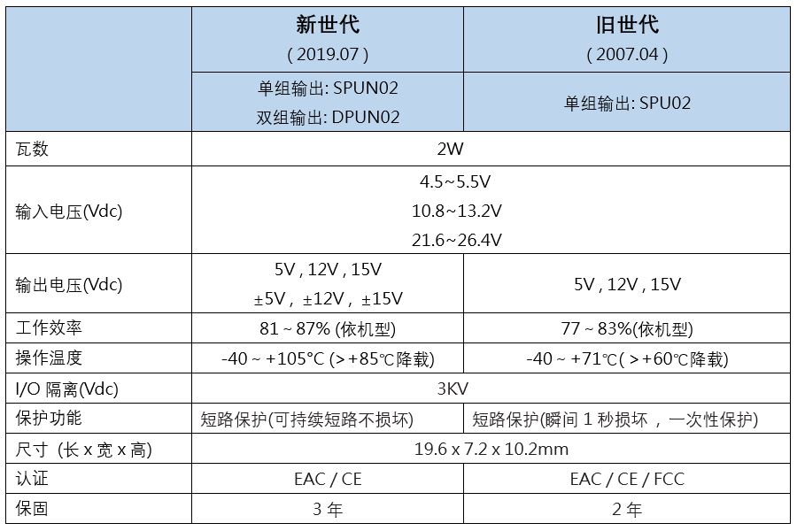 為讓用戶(hù)快速了解本產(chǎn)品特點(diǎn)與前一代SPU02規格差異,請參考以下比較表: